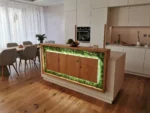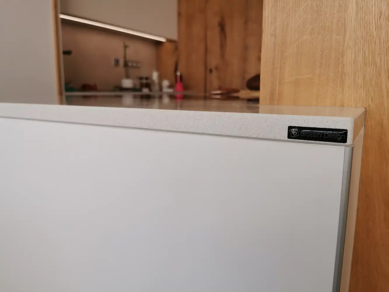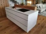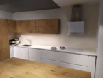 Son fond blanc lumineux, subtilement texturé, permet de créer des espaces élégants, épurés et harmonieux. Il s’intègre parfaitement dans les projets de cuisine sur mesure en Tunisie, salles de bain contemporaines et habillages muraux design.